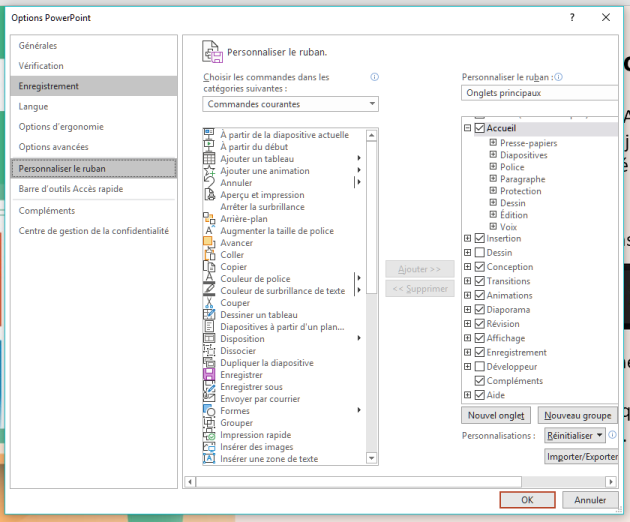 Pour réaliser vos vidéos sur la base de votre Power point, il suffit d'activer la fonction "Enregistrement" qui ne l'est pas à la base.